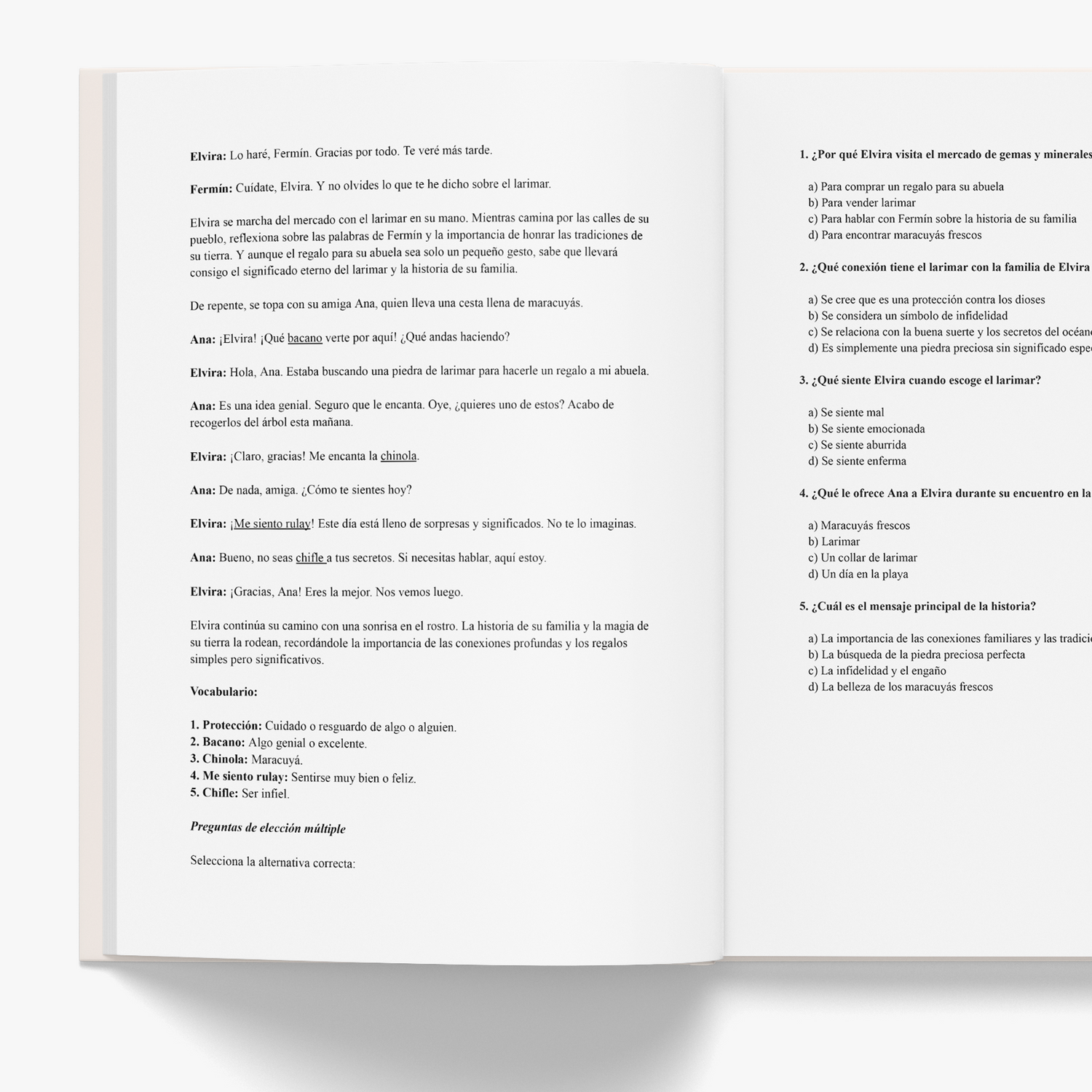 Each story includes over 100 carefully selected vocabulary words, allowing you to expand your Spanish with words in context and reinforced by regional dialogues.