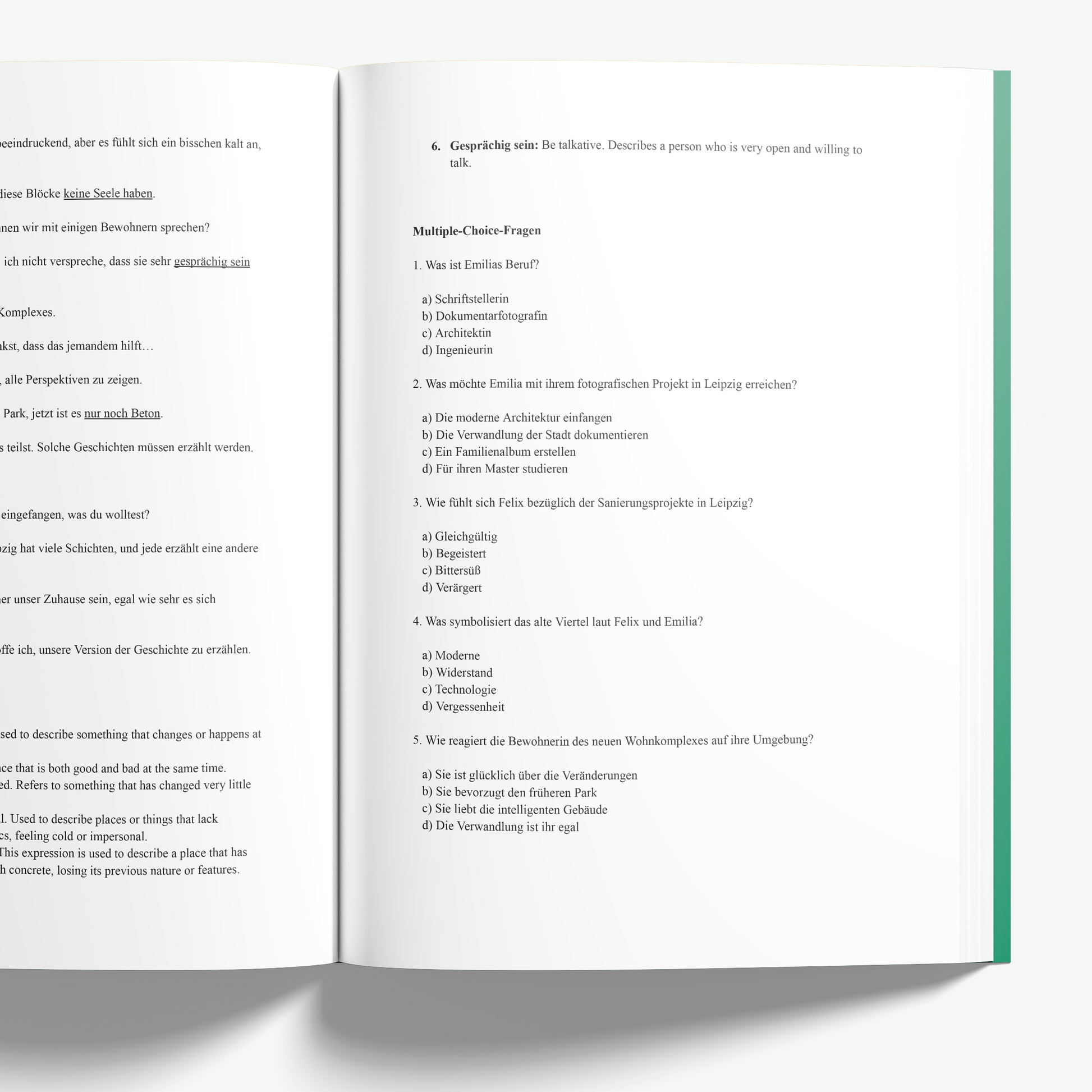 The exercises focus on comprehension and vocabulary retention, helping you apply and reinforce what you've learned from each story.