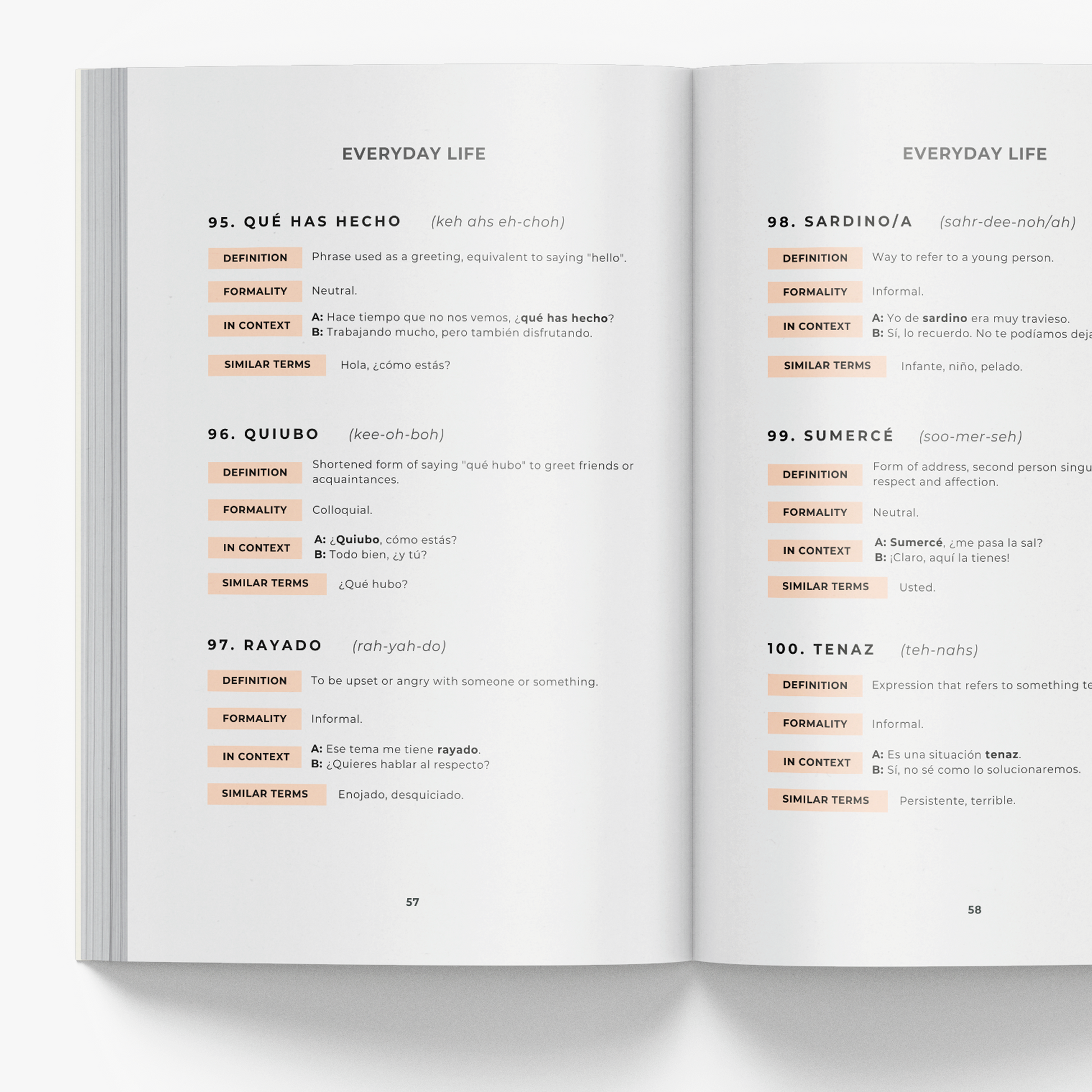 Start with the basics you’ll actually use in Colombia. The phrasebook equips you with practical expressions and dialogues so you can handle real-life situations with confidence. It’s the foundation of your Colombian Spanish journey.