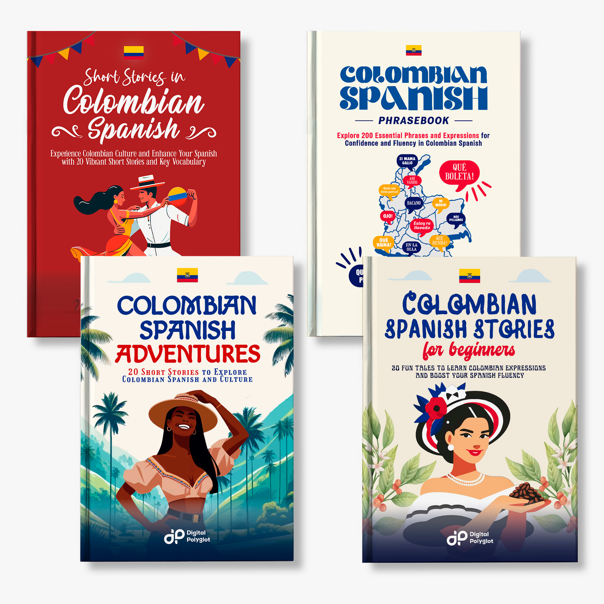 Includes: Colombian Spanish Phrasebook + Short Stories in Colombian Spanish + Colombian Spanish Stories for Beginners + Colombian Spanish Adventures
