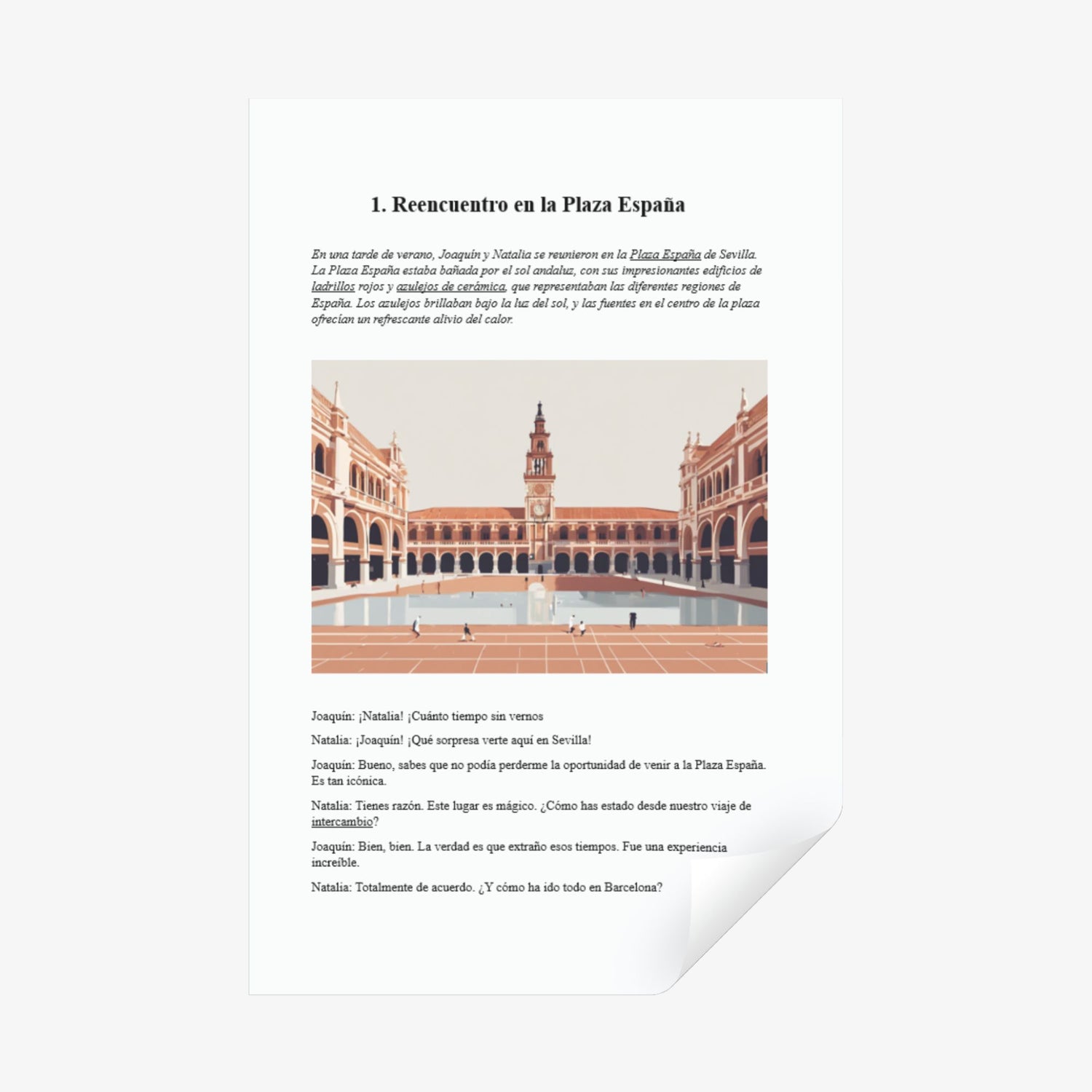 - Cultural Immersion Through Stories: Explore famous Spanish sites while learning vocabulary and expressions used in everyday conversations.