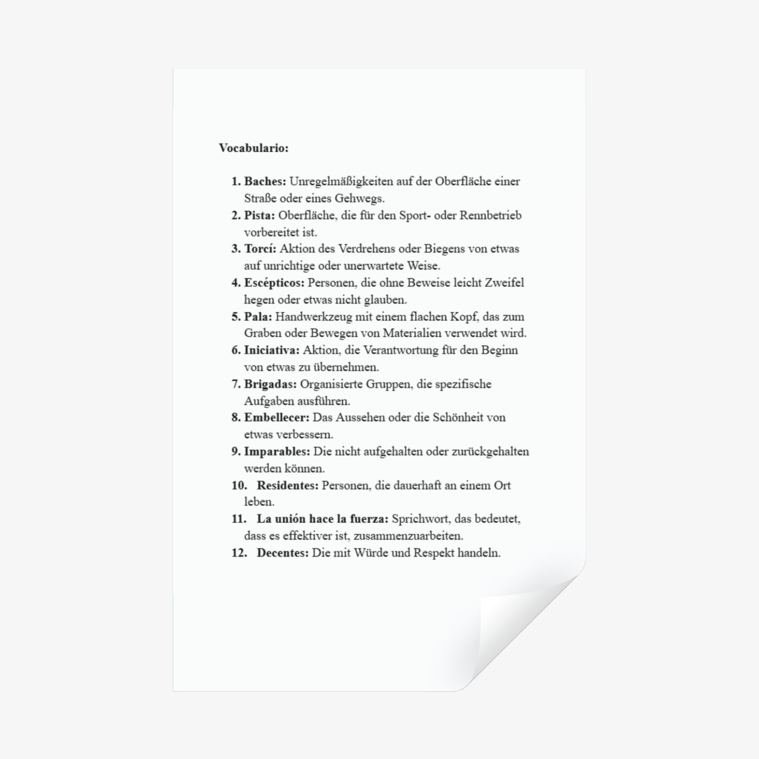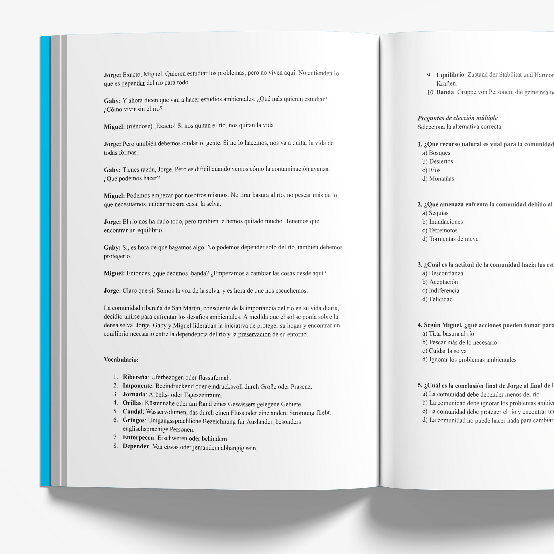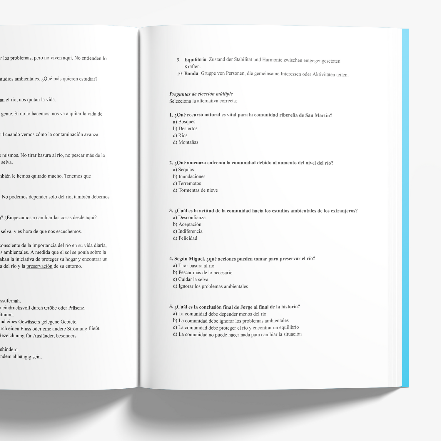 - Language: Spanish (with vocabulary lists in Spanish and German)