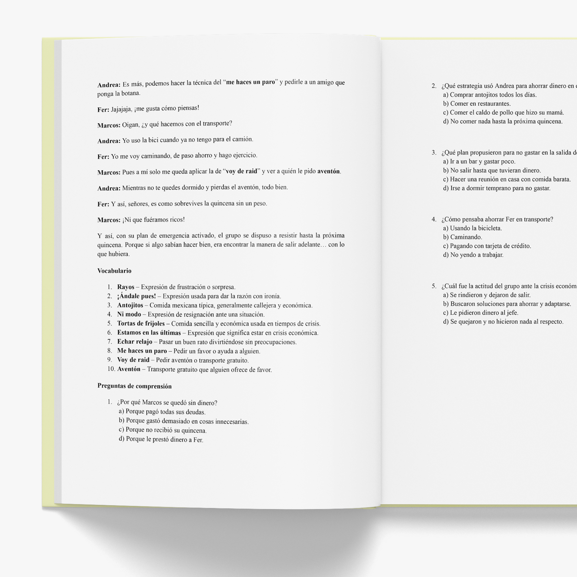 Dive into Mexican culture through language with 20 short stories full of idioms, humor, and real-life conversations. This book shows you how locals speak in markets, homes, and streets, giving you a deep sense of rhythm and expression in Mexican Spanish.