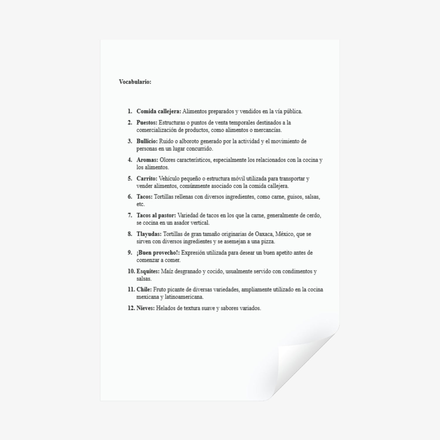 - Boost Spanish Fluency: Gain confidence in conversational Spanish with practical vocabulary and expressions tied to food and culture.
