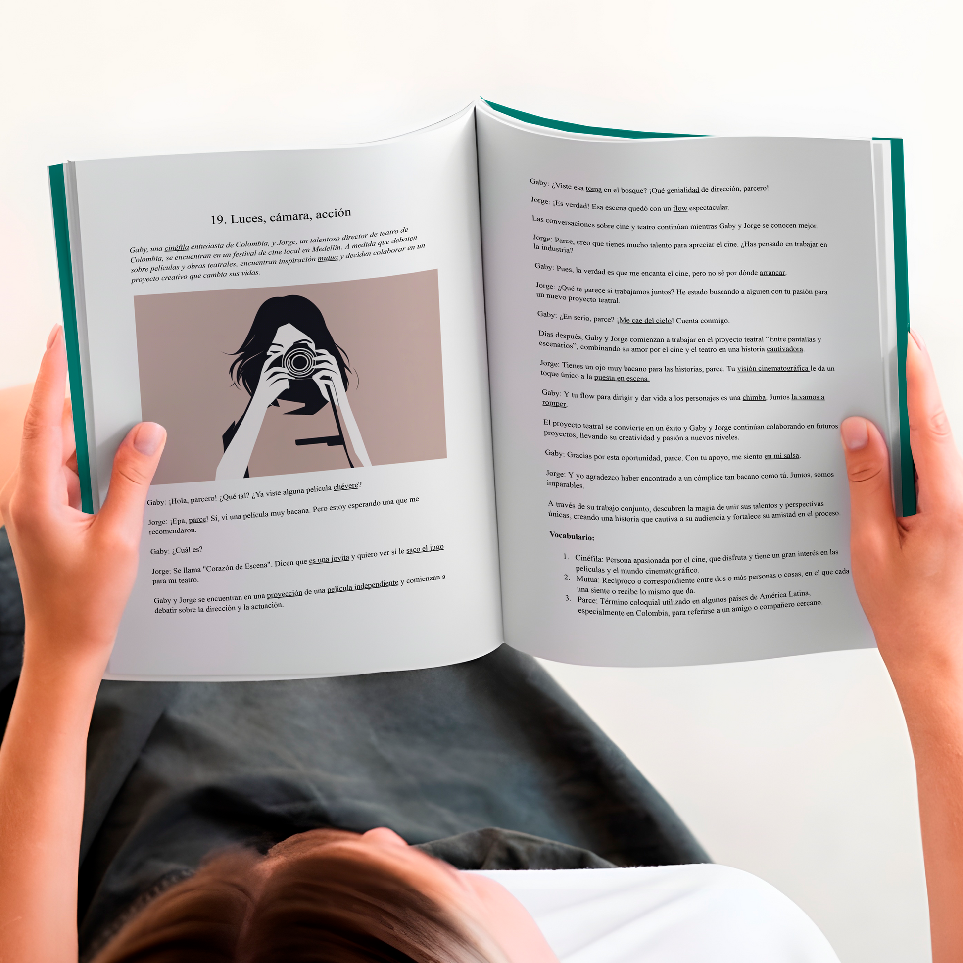 Step into everyday Latin American life with 20 stories filled with realistic dialogue, capturing the essence of informal speech across various countries.