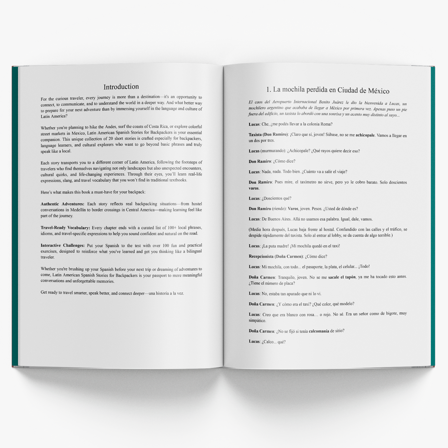 Master Latin American Spanish while discovering the continent’s most exciting destinations. Latin American Spanish Stories for Backpackers features 20 beginner-friendly short stories filled with essential travel phrases, regional slang, and everyday dialogue from across Latin America. Each story includes vocabulary support and comprehension exercises to help you build fluency and cultural understanding.