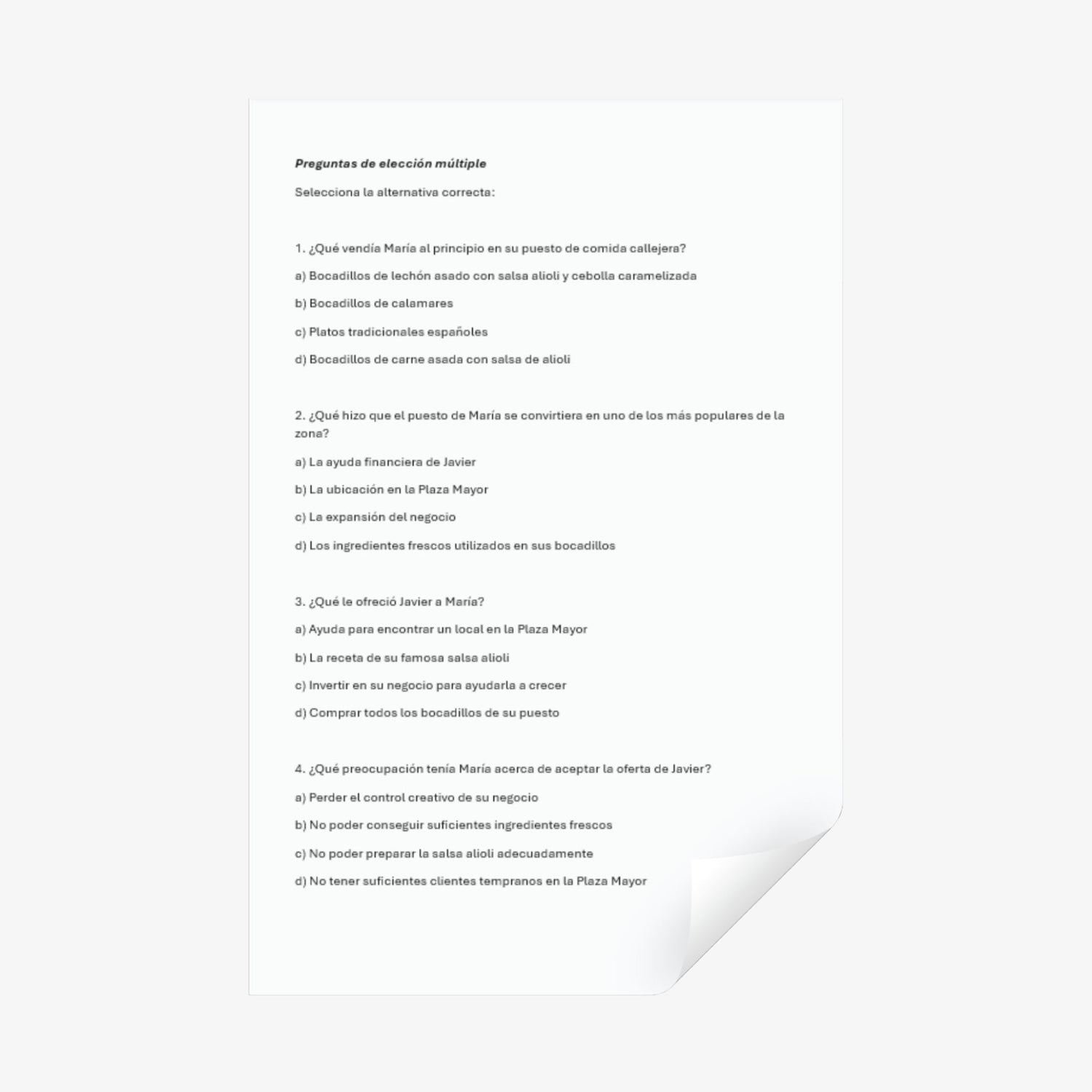 Strengthen retention with exercises after each story, helping you master new vocabulary and feel confident discussing Spanish cuisine.