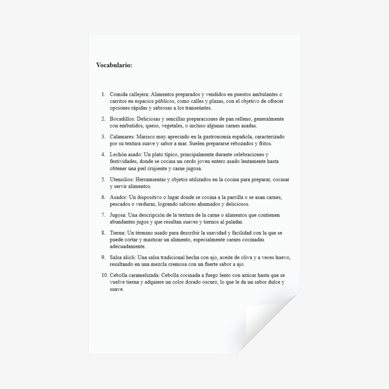 Looking to deepen their understanding of Spanish culinary traditions while expanding their vocabulary and conversational skills.