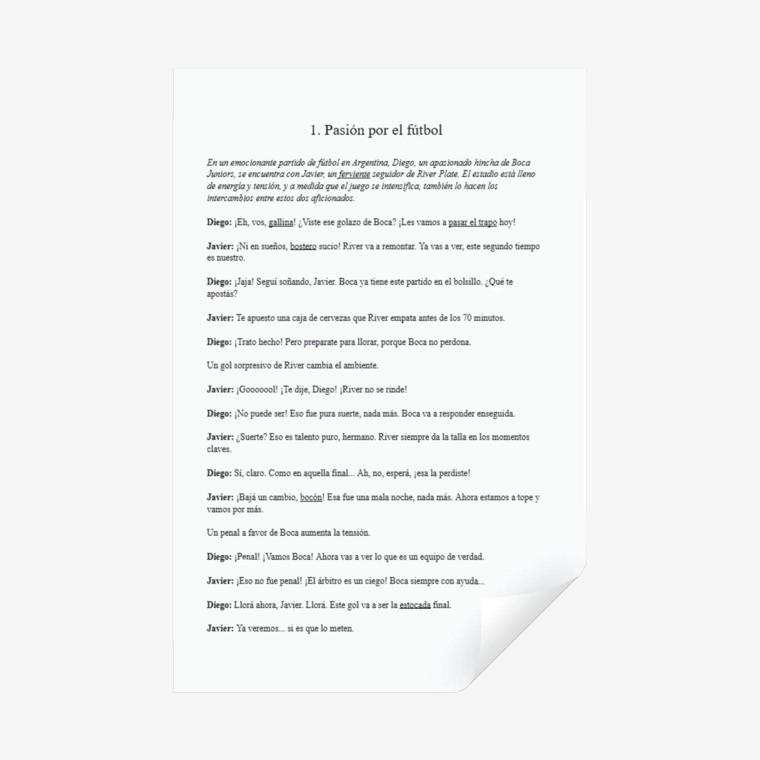Delve into 20 captivating stories filled with slang, idiomatic expressions, and everyday conversations that reveal the cultural nuances of Latin America, from family life to sports passions.