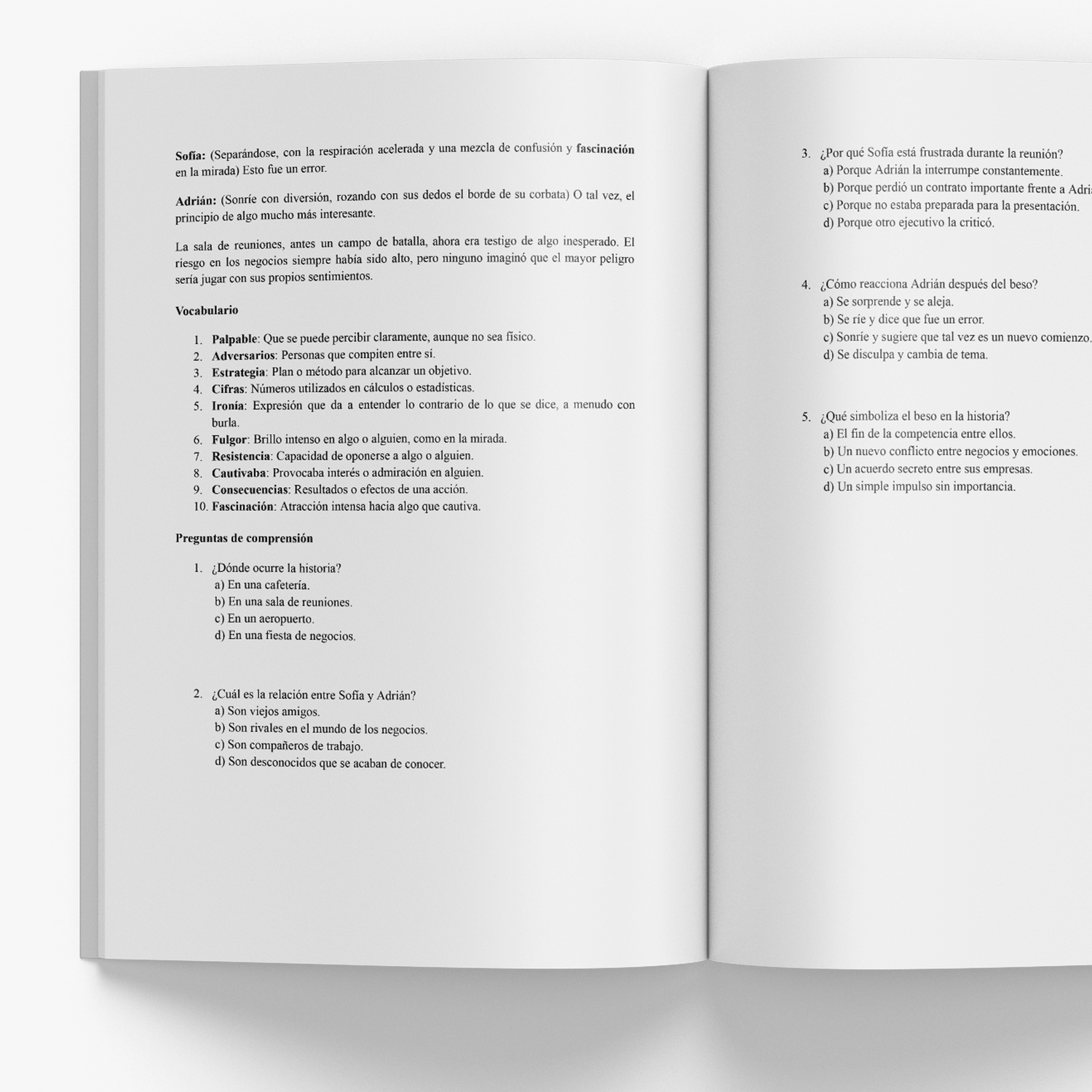 - Reflection exercises: to connect emotionally with the characters and situations.