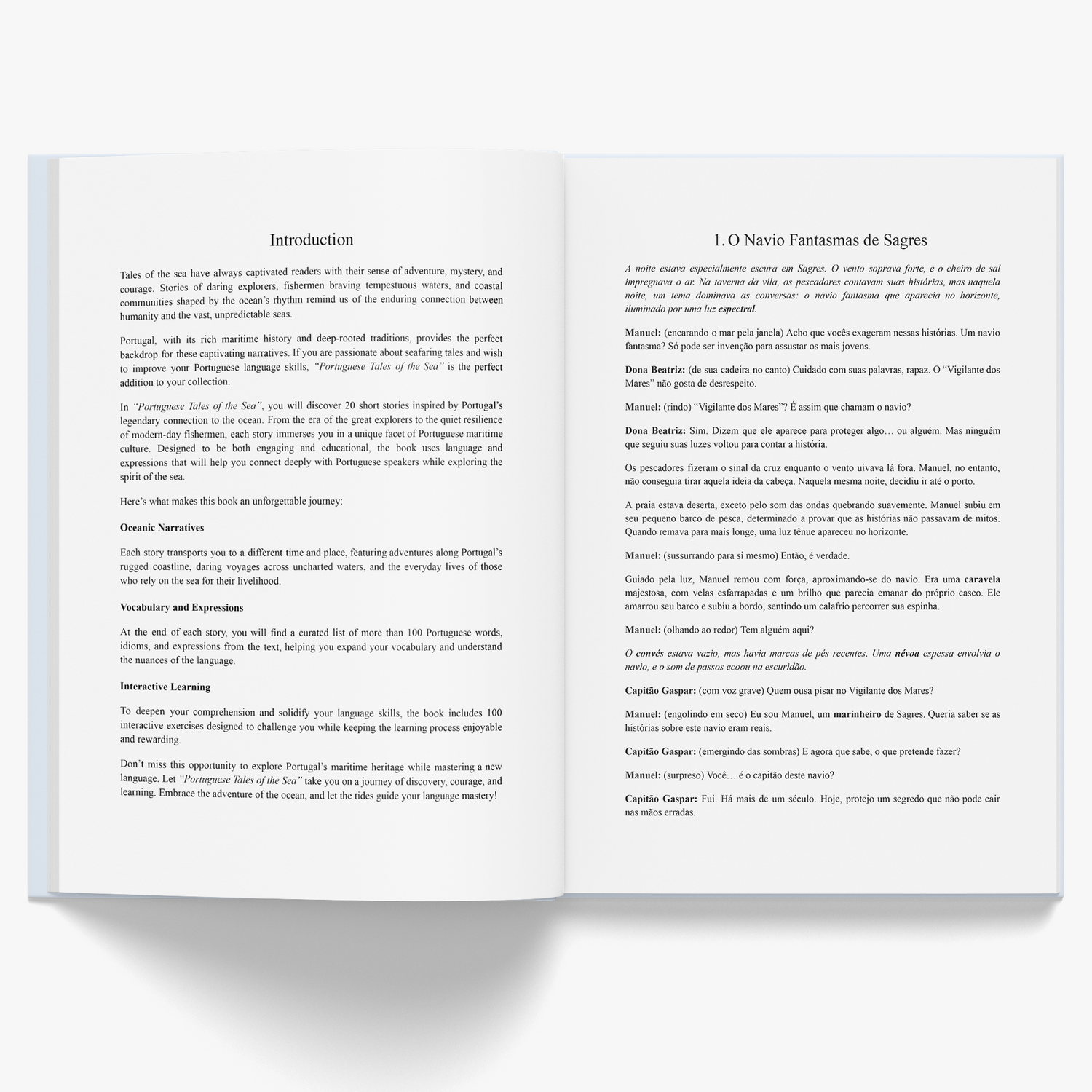 Immerse yourself in Portugal’s rich maritime heritage with Portuguese Tales of the Sea. This collection of 20 captivating short stories brings the history, legends, and traditions of Portugal’s seafaring past to life, offering engaging narratives, essential vocabulary, and interactive exercises for Portuguese learners. Perfect for intermediate learners looking to deepen their language and cultural knowledge.