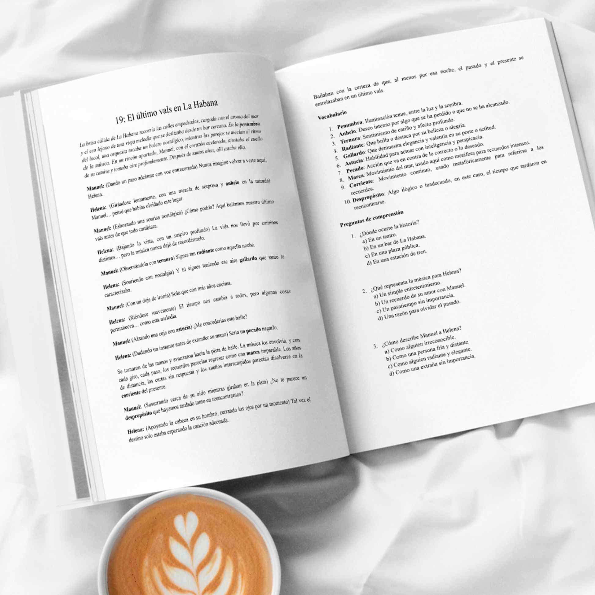 Learning Approach: Context-based learning through culturally diverse storytelling. Designed to strengthen comprehension, expand emotional and thematic vocabulary, and deepen fluency in both Latin American and Iberian Spanish through practical reading practice, exposure to regional language, and engaging review activities.