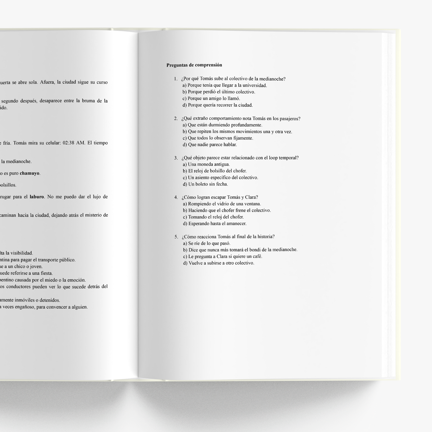 Each story is followed by interactive comprehension questions, practical vocabulary lists, and grammar-based activities designed to reinforce what you’ve just read. These exercises encourage active recall, improve Spanish reading comprehension, and help you retain important phrases and structures. You’ll learn not only to recognize new words, but to understand them in context, use them confidently, and apply them in real conversations.