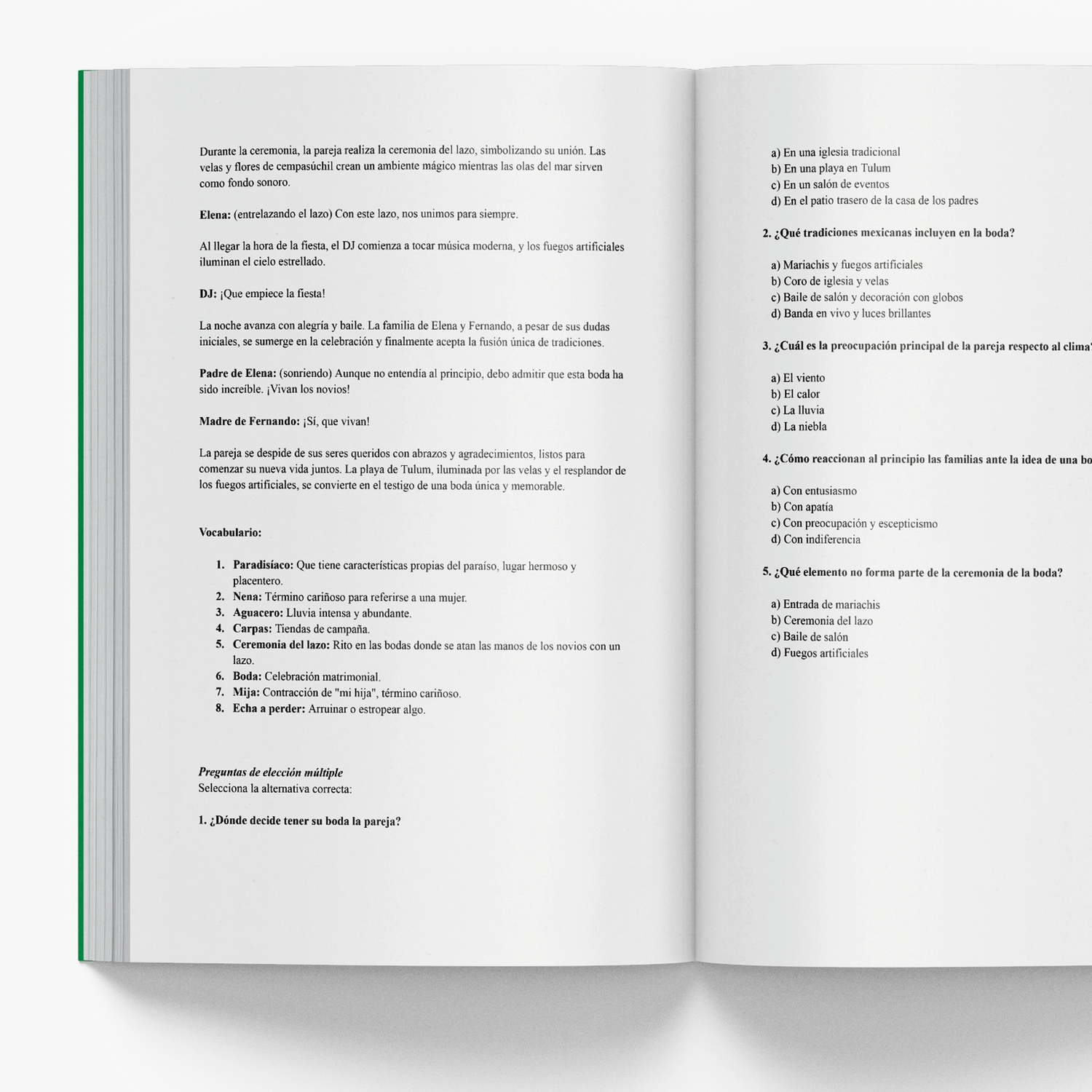 - Authentic Mexican short stories that reflect real-life contexts and expressions.
