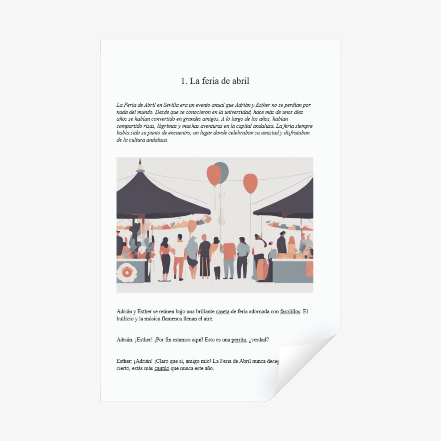 Explore dialects through 20 stories, each set in a different Spanish-speaking region. Each story immerses you in local language, cultural references, and real-life scenarios.