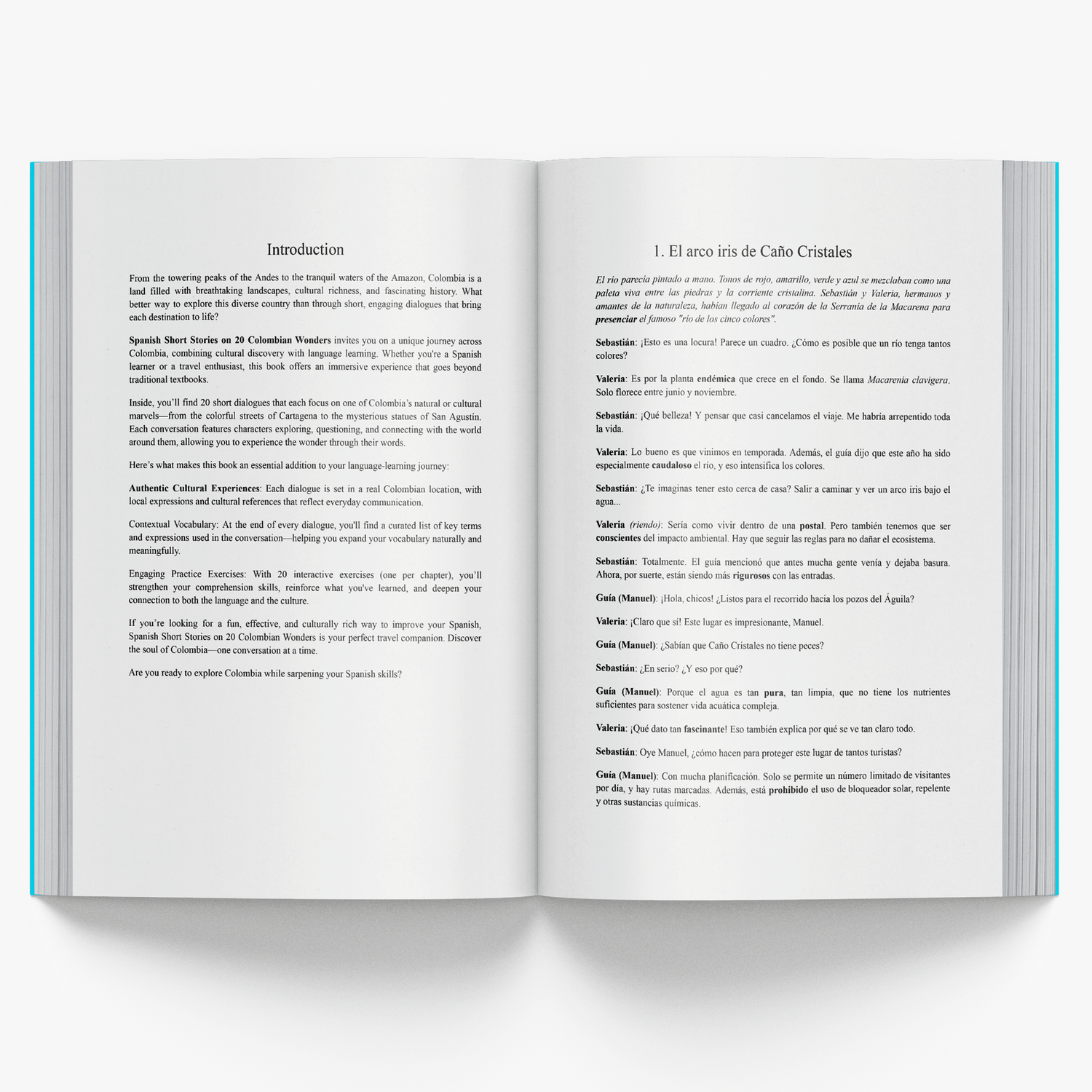 Spanish Short Stories on 20 Colombian Wonders: Discover Colombia's Wonders through 20 Short Dialogues invites you to explore the cultural richness of Colombia while strengthening your Spanish skills.