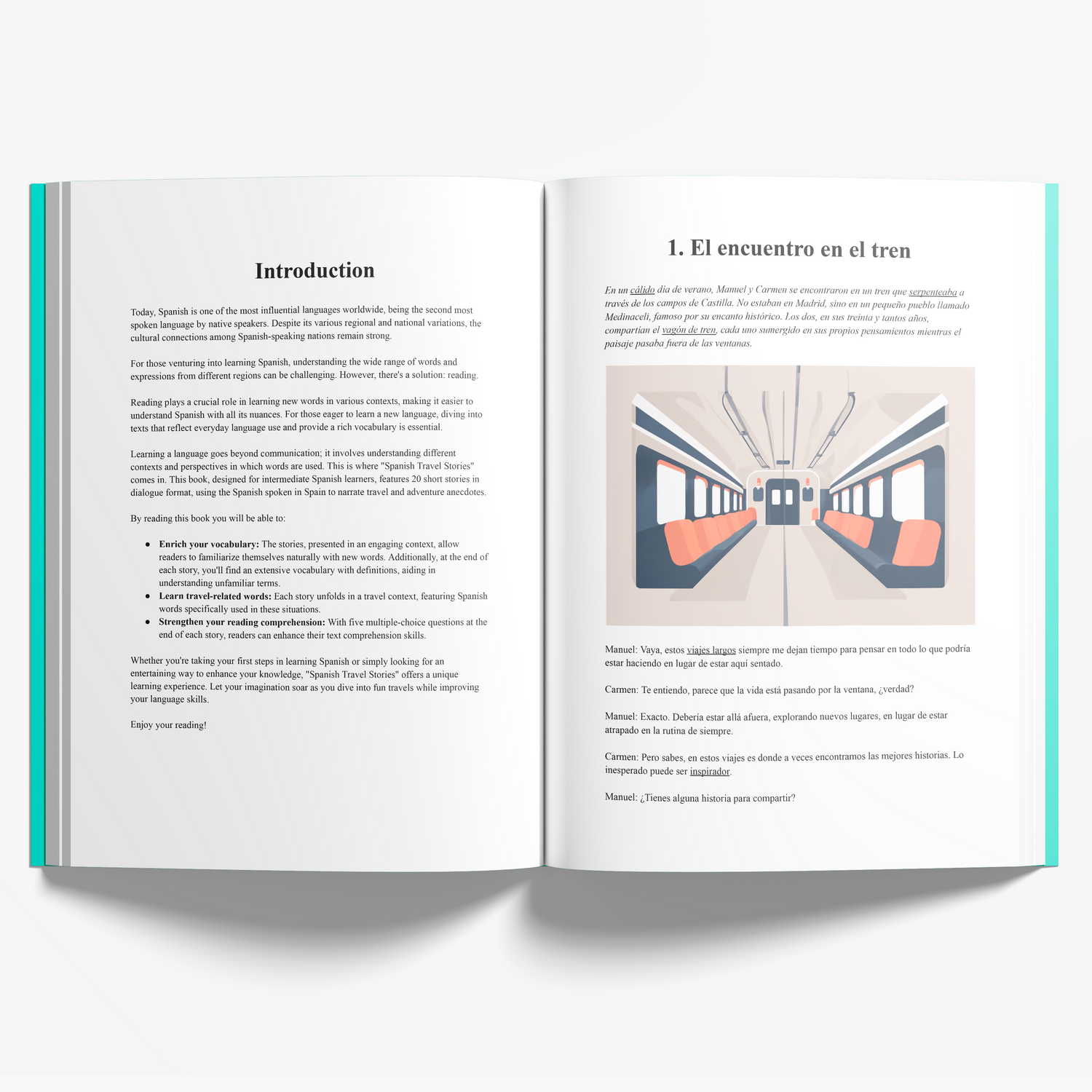Spanish Travel Stories: Learn Spanish Vocabulary, Slang, Expressions, and Idioms through 20 Fun Short Stories in Conversational Spanish on Traveling is an immersive and enjoyable resource designed to make language learning both practical and cultural.