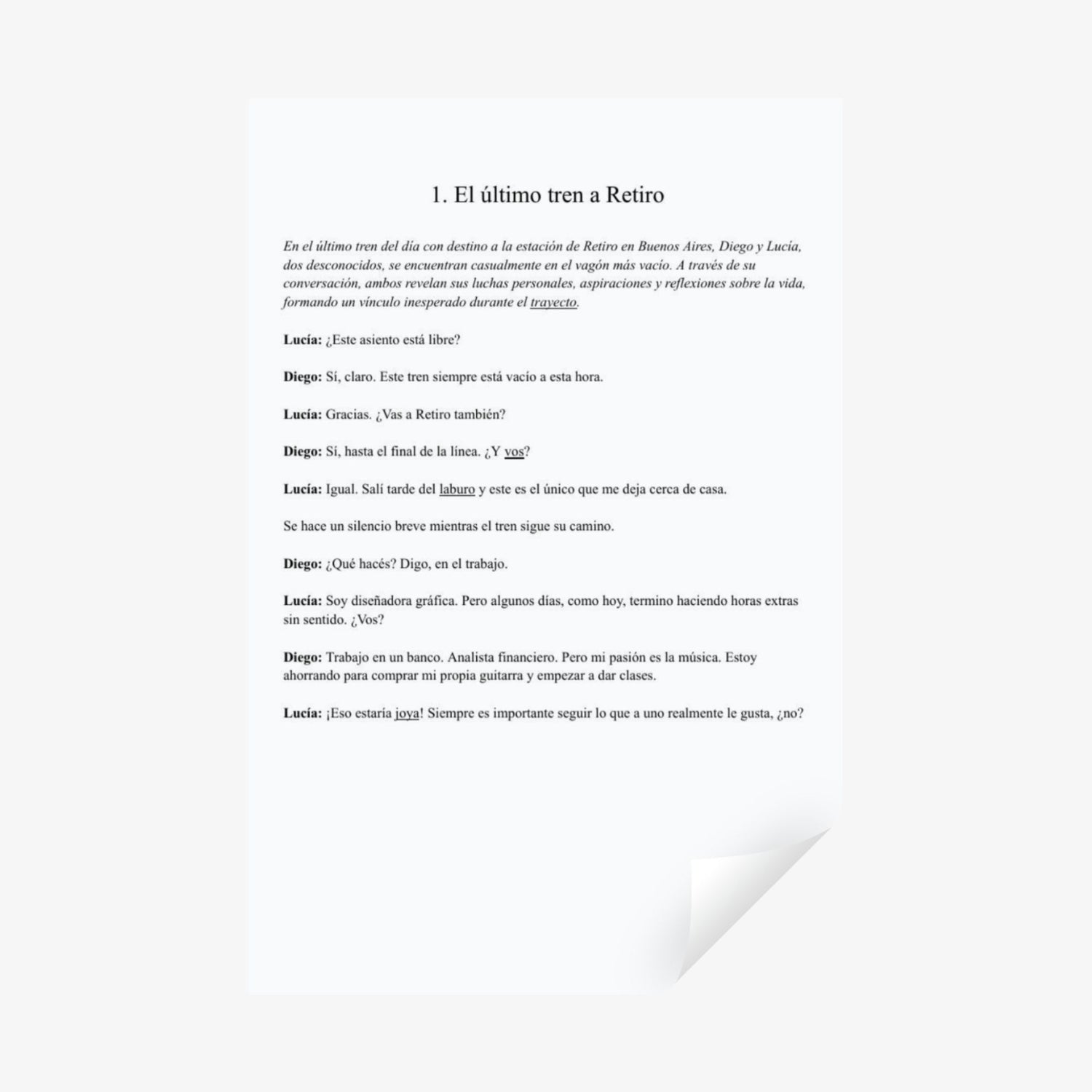 - Real-Life Dialogues: Learn Spanish slang through 20 stories covering relatable topics.