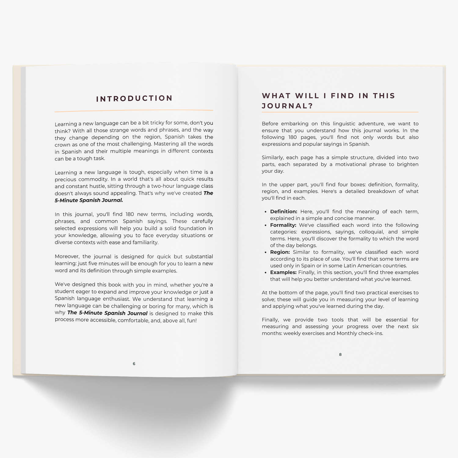 - Title: The 5-Minute Spanish Journal: 180 Words, 180 Days: Unlocking Spain and Latin America’s Most Used Terms and Expressions for Everyday Conversations